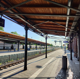 Chegada a hora, voltámos para a estação onde apanhámos o comboio seguinte. Bem, plano geral desta tarde: apanhar 3 comboios, sendo que iríamos ter 20 min de espera entre cada um. Começou logo mal, o primeiro comboio se atrasou-se 20 minutos o que fez com que perdesemos o comboio seguinte por 1 min! Lá ficámos uma hora à espera, numa aldeiazita na mesmo na fronteira entre a Alemanha e a Polónia! Nesse tempo tentámos provar o prato nacional da Alemanha, o Kebab (há literalmente um restaurante de kebabs em cada esquina), no entanto falhámos a missão. Tentámos 4 restaurantes e nenhum deles aceitava cartão 🤷♂️